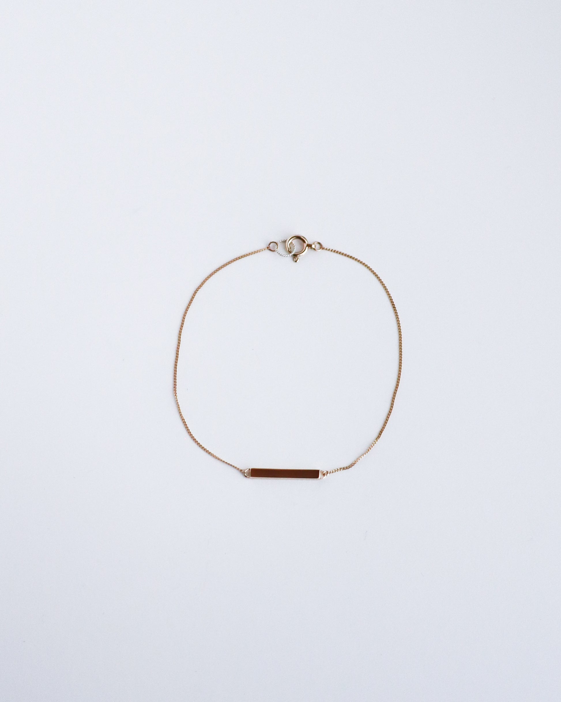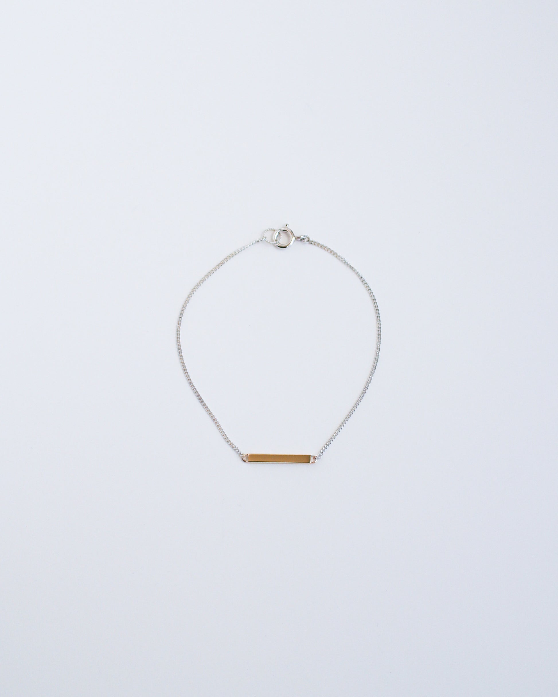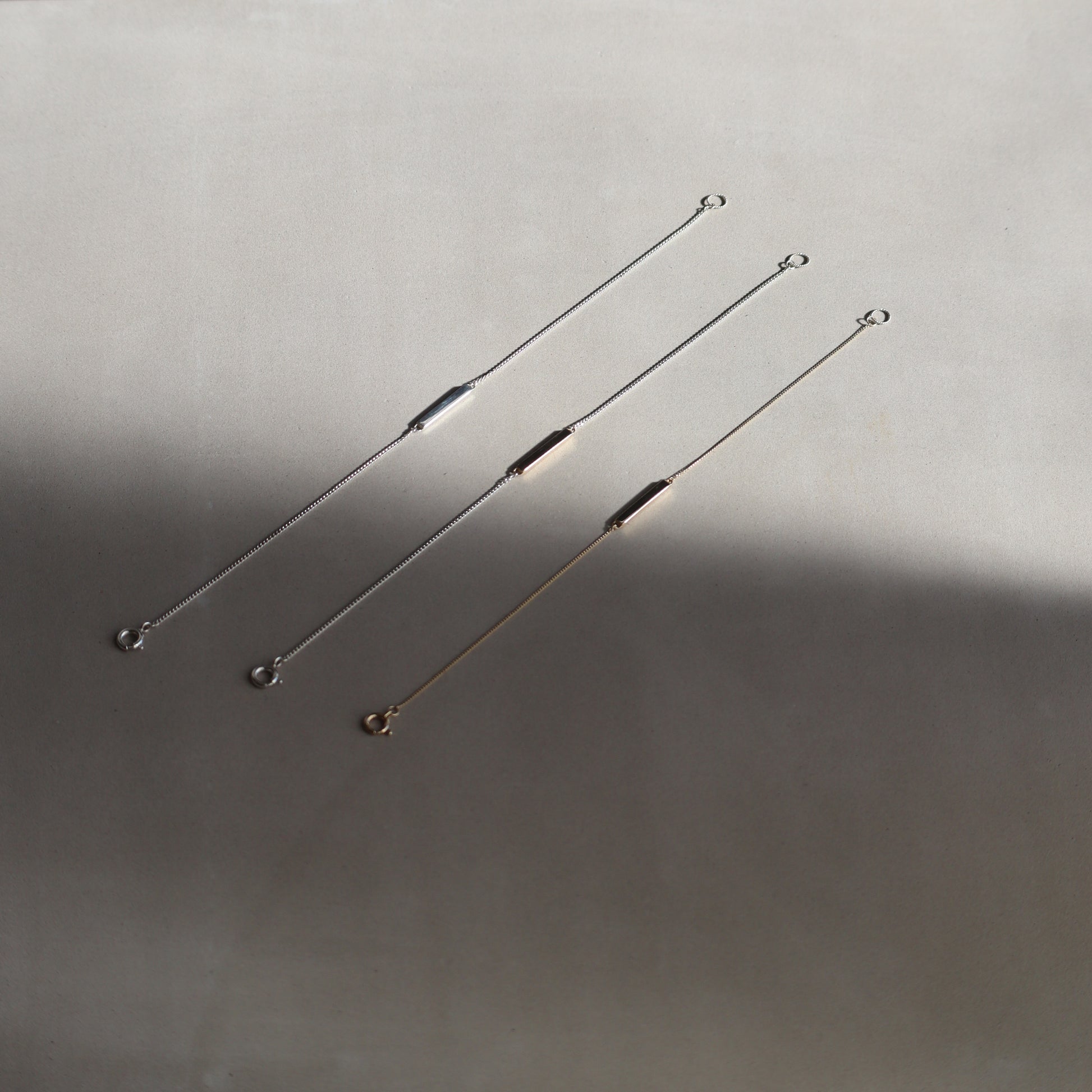 肌の上に一筋の線を描くように、そっと寄り添うバーシルエットのブレスレット。